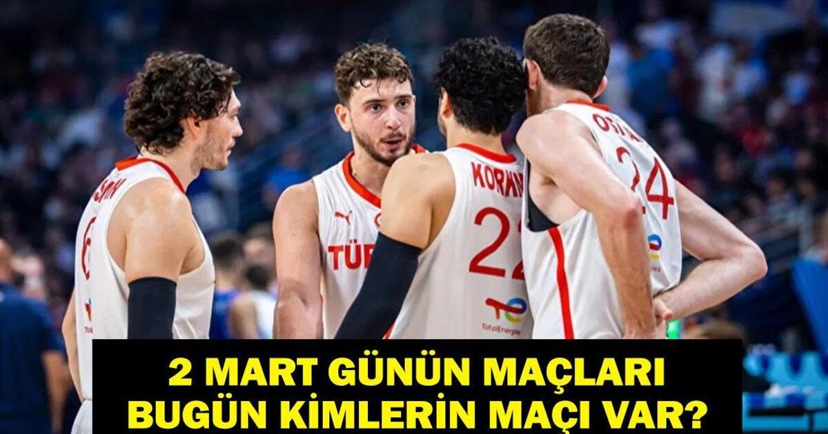 Sporseverler 2 Mart Pazartesi günün maçlarını araştırıyor. Bugün oynanacak olan maçlar için heyecan oldukça yüksek. 2 Mart Pazartesi günü Avrupa maçları, NBA, Basketbol EuroLeague Lig maçları, FIBA Dünya Kupası Elemeleri Türkiye Sırbistan basketbol maçı, La Liga, Bundesliga, Serie A ve İngiltere Premier Lig maçları oynanacak. Hem uluslararası arenada hem de yerel liglerde dikkat çeken karşılaşmalar, spor tutkunlarını televizyon başına çekecek. Süper Lig, TFF 1. Lig, Premier Lig, Bundesliga, La Liga, Serie A, Ligue 1, Championship, Portekiz Premier Lig gibi önemli liglerin yanı sıra, basketbol ve voleybol maçlarının günün spor takviminde yer alıp almadığı merak ediliyor. 2 Mart Pazartesi oynanacak maçlar heyecanla takip ediliyor. Peki, 2 Mart Pazartesi bugün hangi maçlar var? Türkiye Sırbistan maçı hangi kanalda, saat kaçta? İşte 2 Mart Pazartesi günün maçları...