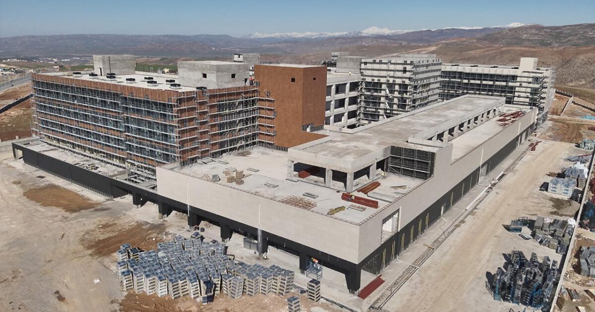 Siirt'te 400 yataklı Eğitim ve Araştırma Hastanesi ek binası, yangına karşı gelişmiş otomatik söndürme sistemleri, deprem izolatörleriyle güçlendirilmiş dayanıklı yapısı ve "akıllı hastane" modeliyle inşa ediliyor.