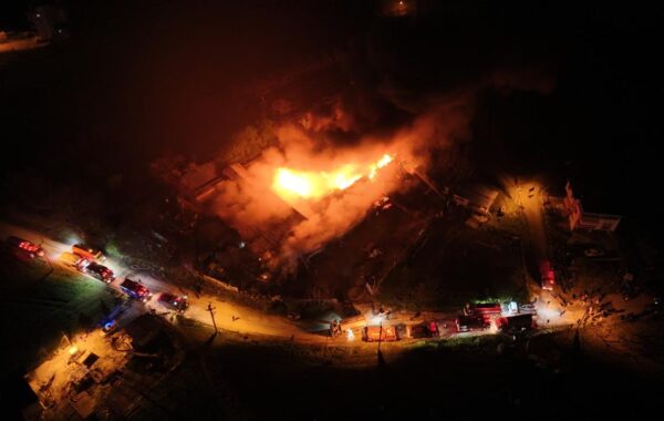 Samsun'un İlkadım ilçesinde bir depoda çıkan yangın söndürülmeye çalışılıyor.