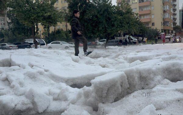 Adana'da etkili olan sağanak ve dolu nedeniyle cadde ve sokaklarda su birikintileri oluştu, araçlar zarar gördü.