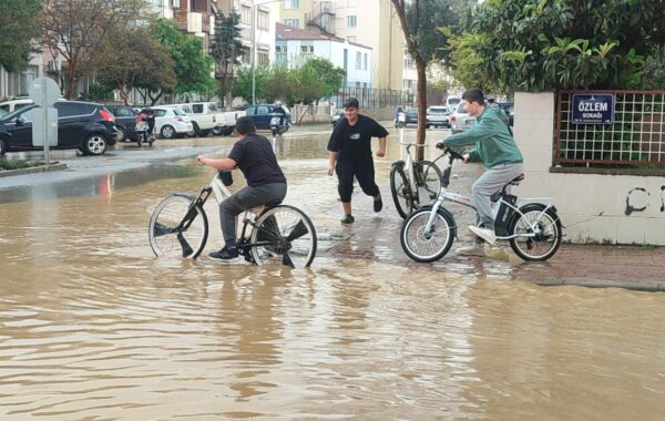 İzmir'in Ödemiş ilçesinde etkili olan sağanak nedeniyle bazı mahallelerde su birikintileri oluştu.