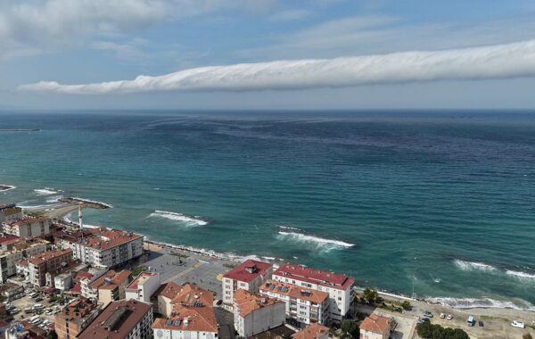 Samsun'un Yakakent ilçesinde Karadeniz üzerinde nadir görülen doğa olayı rulo bulut roll cloud oluştu.
